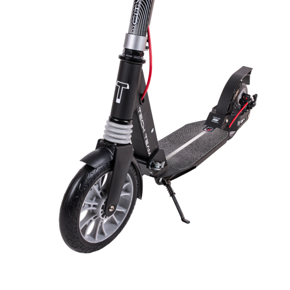 Самокат городской tech team city scooter disk brake серый – лучшее предложение этого года. Предназначена для начинающих райдеров массой до 50 кг. Изготовлен из облегченного высокопрочного алюминия, имеет вес 6,1 кг. Для приобретения техники по лучшей цене, получения бесплатной консультационной помощи предлагаем стать покупателями нашего интернет-магазина. Из преимущественных качественных характеристик производитель выделяет надежную прочную платформу и накатистые скоростные колеса. Рулевая часть долговечная, не деформируется при максимальных нагрузках, регулируется в 3-х положениях, от 88 см до 104 см. Прорезиненные анатомические грипсы исключают скольжение, увеличиваю хват руки и степень безопасность езды. Платформа по ширине и длине составляет 136мм*400 мм, устойчивая и нескользящая благодаря фирменной шкурке. 200ммм колесная часть гарантирует максимальный накат. Оснащенность техники современными подшипниками обещает максимальный разгон. Возможность складывания позволяет быстро трансформировать технику до минималистичных размеров, что очень удобно при перевозке в машине и хранении в квартире. Если в начинающий райдер, производитель рекомендует обратить внимание именно на этот вариант техники. Купить модель можно посредством связи с менеджером в телефонном или онлайн-режиме.